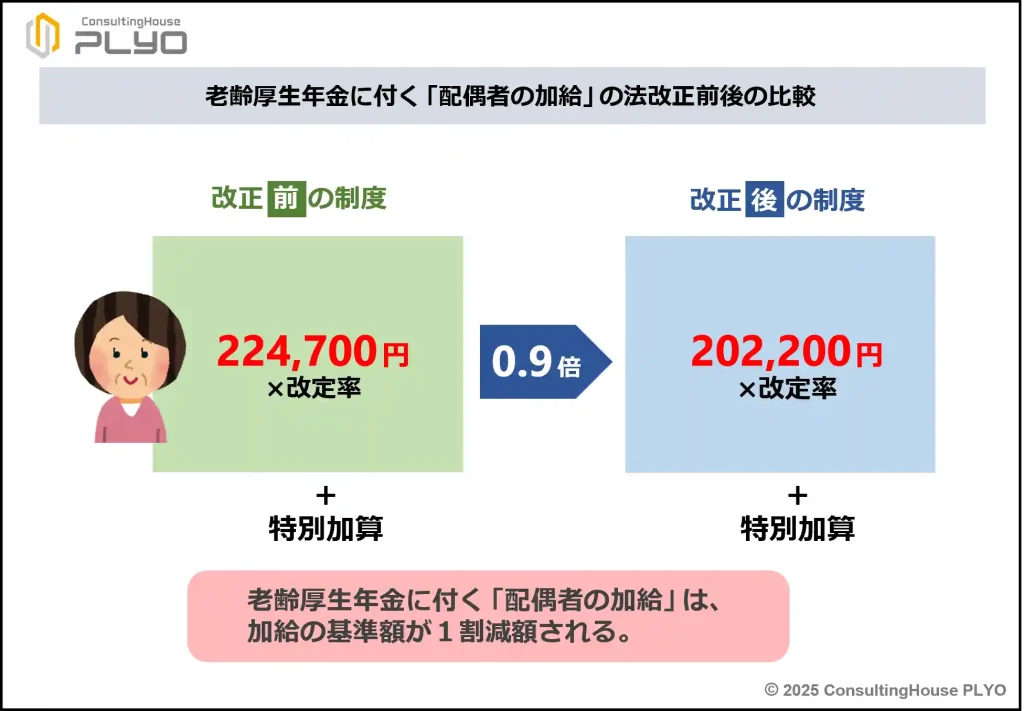 実は、その仕組みは老齢年金や障害年金への加算でも適用されることになっており、具体的には次のとおりです。