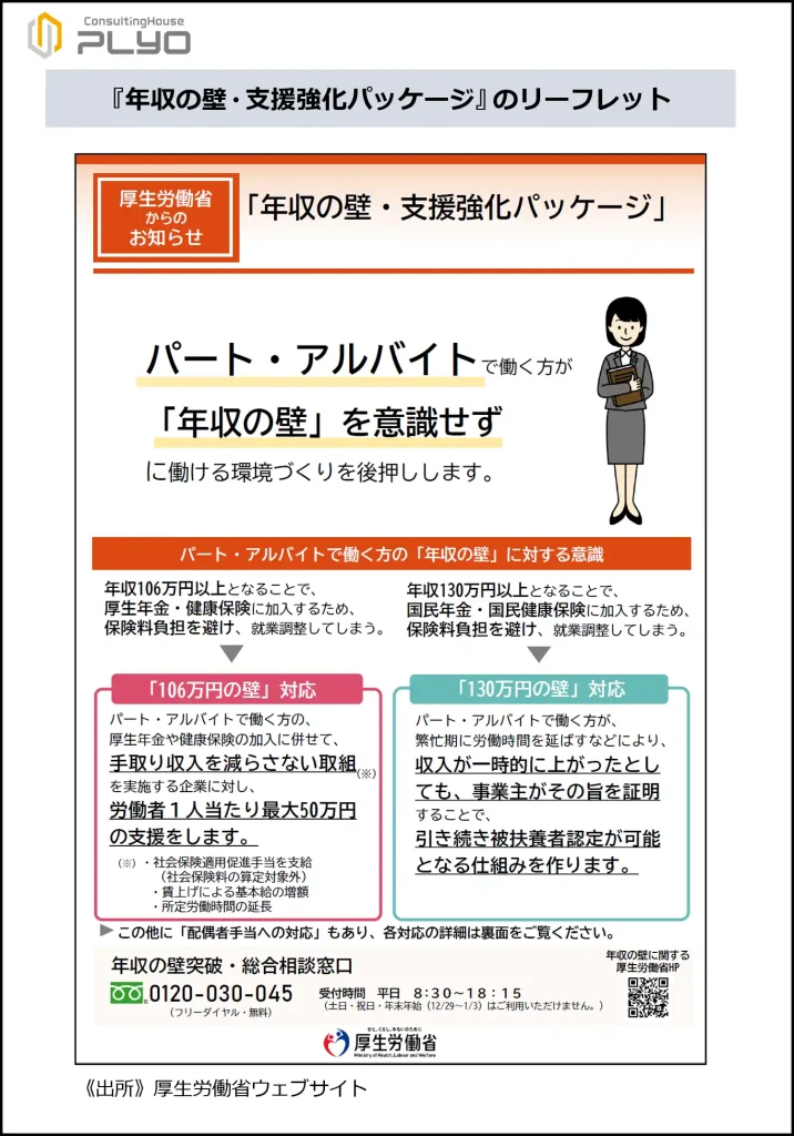 このような趣旨を踏まえ、いわゆる「106万円、130万円の壁」対策として『年収の壁・支援強化パッケージ』が策定されました。