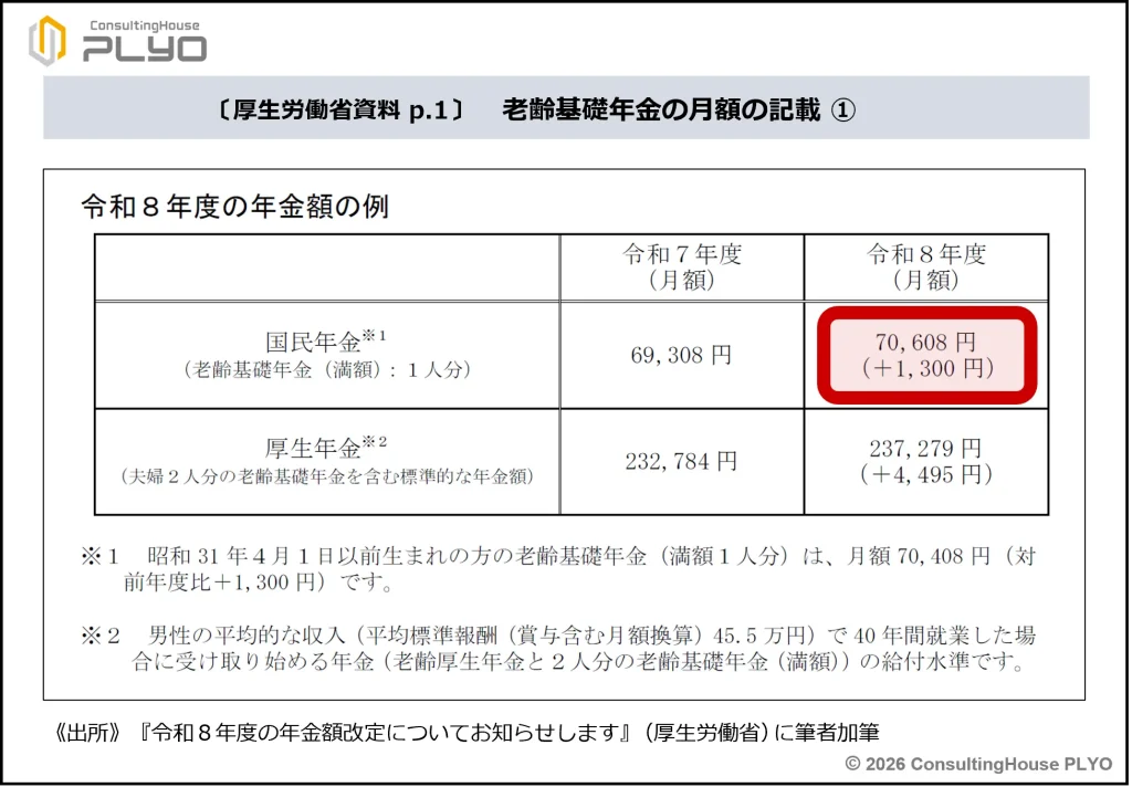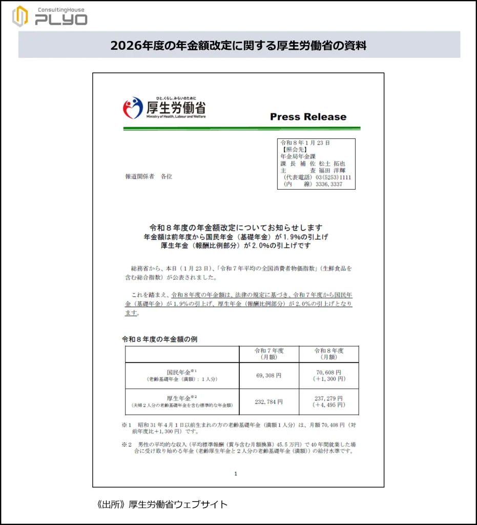 2026(令和8)年1月23日、厚生労働省から同年4月からの新しい年金額が発表されました。