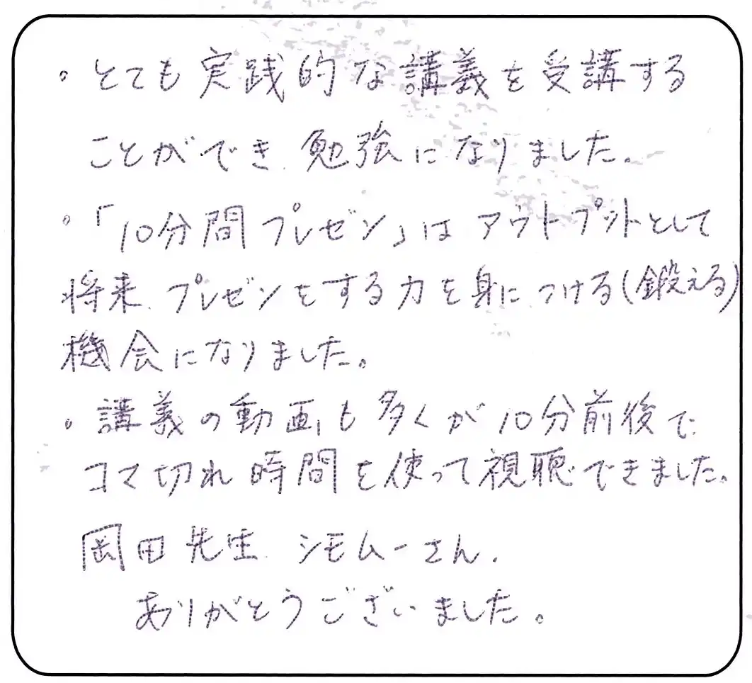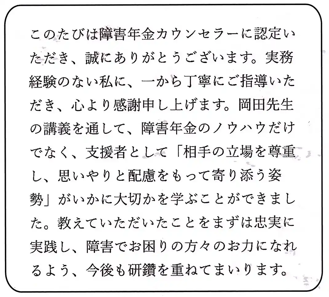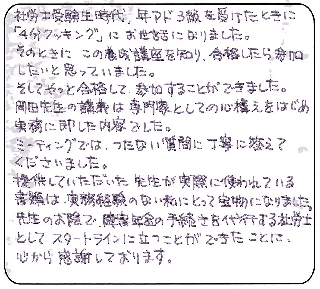 HOME > 受講生の声 第8期生 北海道 F・Kさま 第8期生 茨城県 A・Sさま 第8期生 滋賀県 T・Yさま 第8期生 岐阜県 M・Kさま 第7期生 鹿児島県 M・Rさま 第7期生 長野県 M・Oさま 第6期生 東京都 A・Yさま 第5期生 千葉県 Y・Nさま 戻る 2025年9月22日 author
